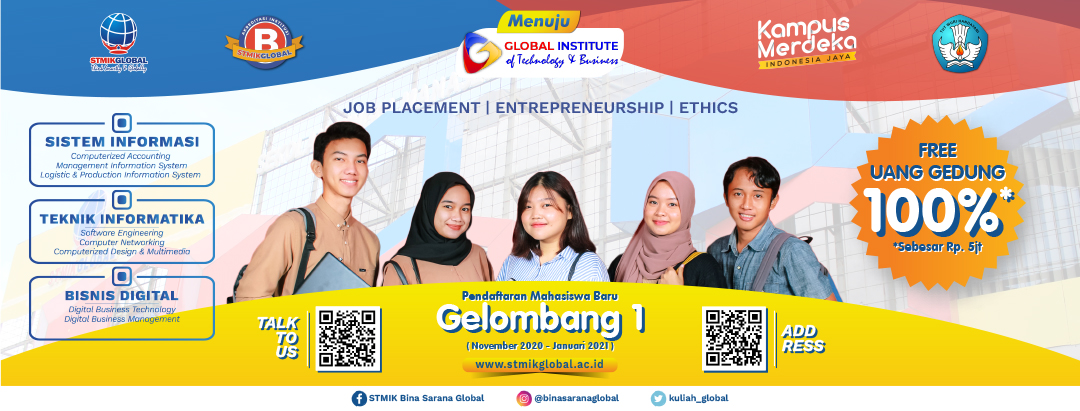 “Sudah hampir 3 tahun kami kuliah di STMIK Global, selama kuliah kami mendapatkan keluarga baru sahabat dan staff STMIK Global yang ramah dan friendly. Dua tahun kuliah dan tahun ke-3 Alhamdulillah kami mendapatkan penempatan kerja disalah satu bank terkemuka di Indonesia.”